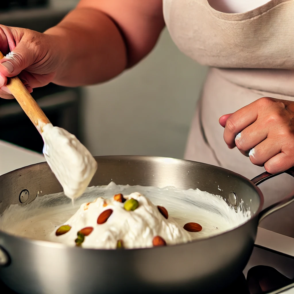 Incorporez délicatement les fruits secs torréfiés (amandes, noisettes, pistaches) à la préparation à l’aide d’une spatule.