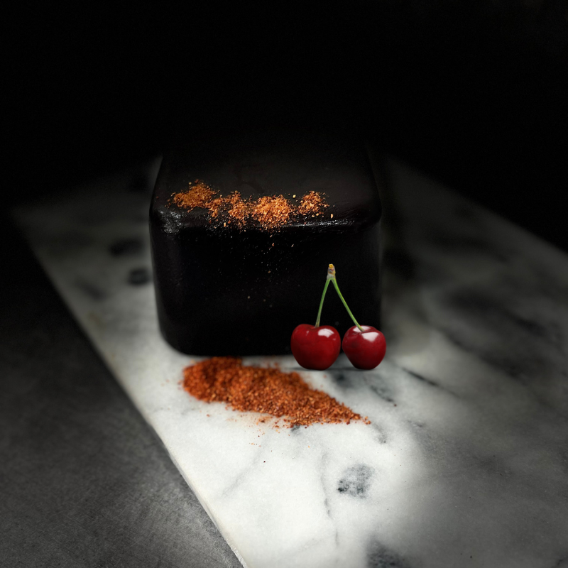 Cette pâte de fruit cerise piment d’Espelette offre un mélange subtil d’arômes riches et variés. La saveur intense de la cerise se marie harmonieusement avec la chaleur subtile du piment d’Espelette, créant une expérience gustative à la fois douce et relevée. Chaque bouchée révèle un équilibre parfait entre ces deux ingrédients, rendant cette confiserie aussi surprenante que délicieuse. Vous avez aussi la possibilité de voir toutes nos créations dans notre collection.